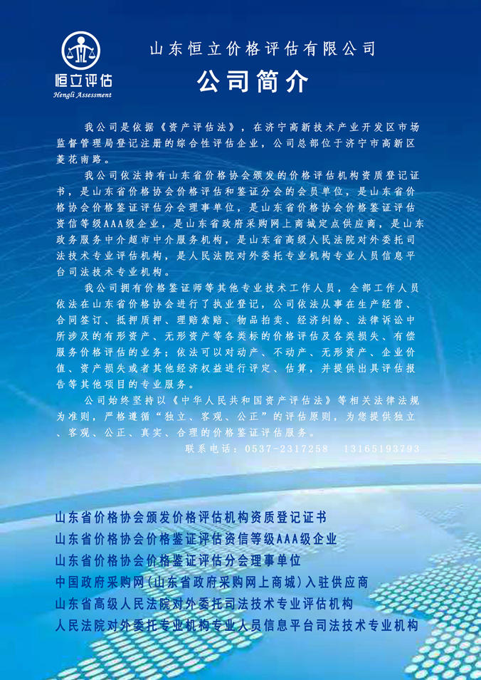 单位名称:山东恒立价格评估有限公司