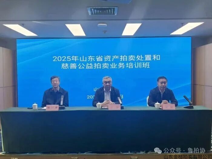 2025年11月5日,2025年山东省资产拍卖处置和慈善公益拍卖业务培训班在济南举办,省商务厅商贸发展处二级调研员张强,中拍协副会长、省拍协会长李伟,中央财经大学教授刘双舟出席开班仪式,省拍协副秘书长董珂、副主任连惠丰,全省38位拍卖企业代表参加,培训班由副秘书长董珂主持。